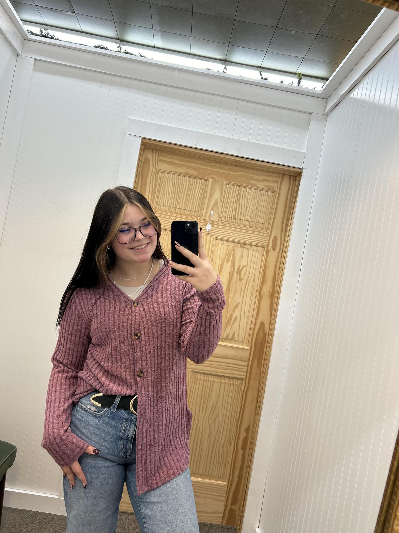 Long Sleeve V-Neck Button Cardigan - Fuchsia